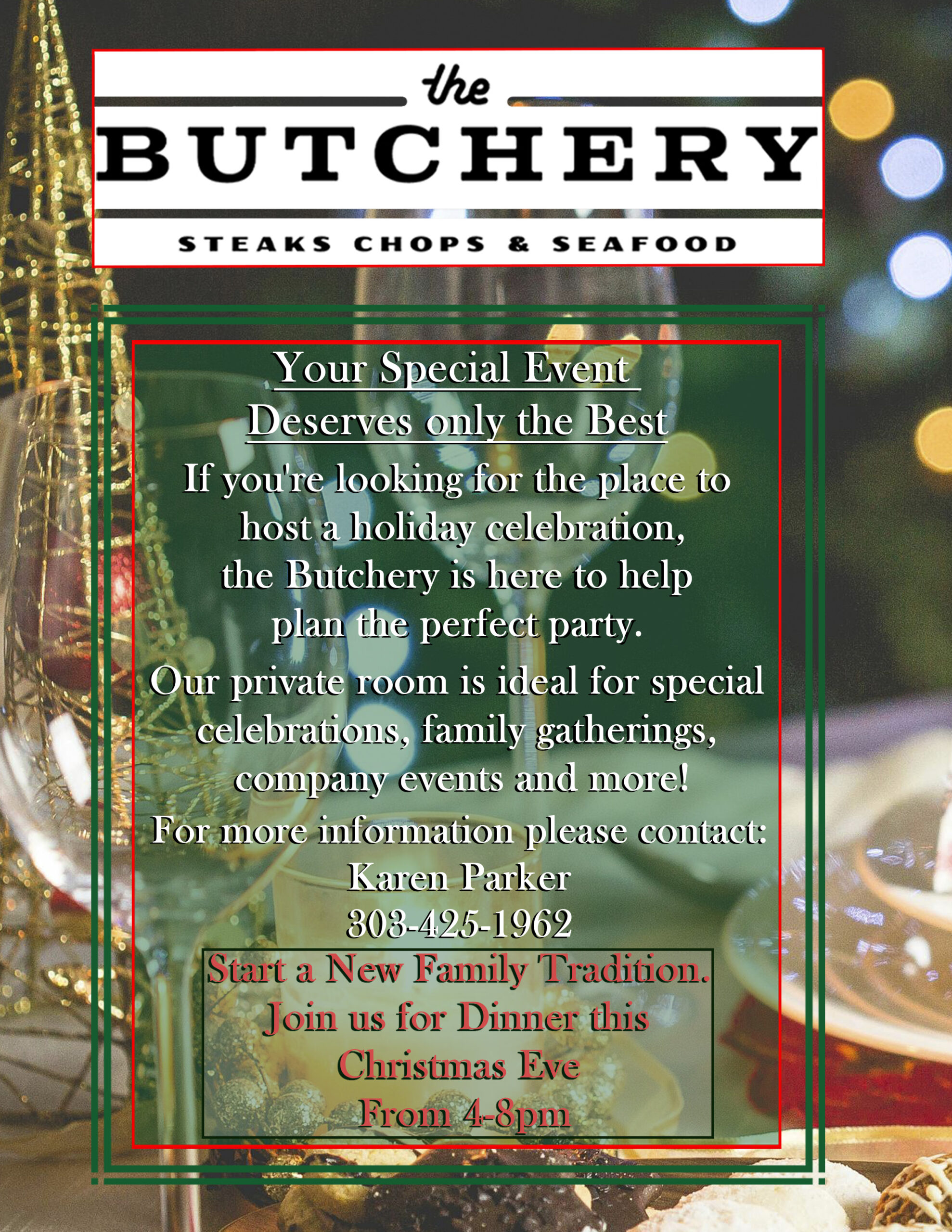 Conveniently located near Wadsworth and & 80th Ave, The Butchery is perfect for any occasion. Our menu features consistently craveable dishes that creatively incorporate the highest of quality steaks, chops and seafood. Our perfectly balanced wine list, refreshing cocktail menu and relaxing atmosphere will provide you and your guests a wonderful dining experience.